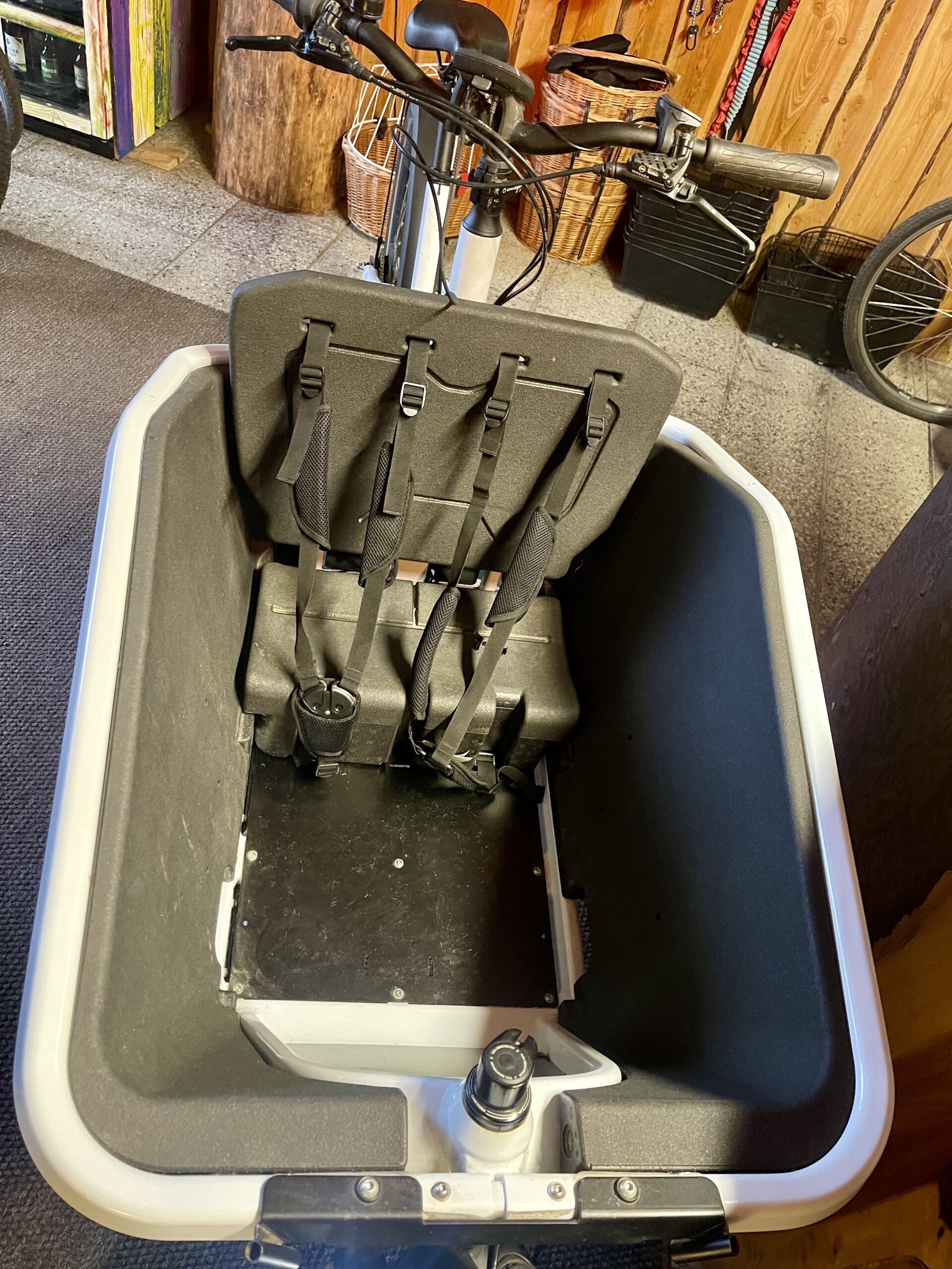 Sicherheit & Komfort: Die großzügige EPP-Schaumbox bietet Platz für bis zu zwei Kinder (optionales Sonnen-/Regenverdeck mietbar) oder bis zu 200 Liter Ladevolumen.