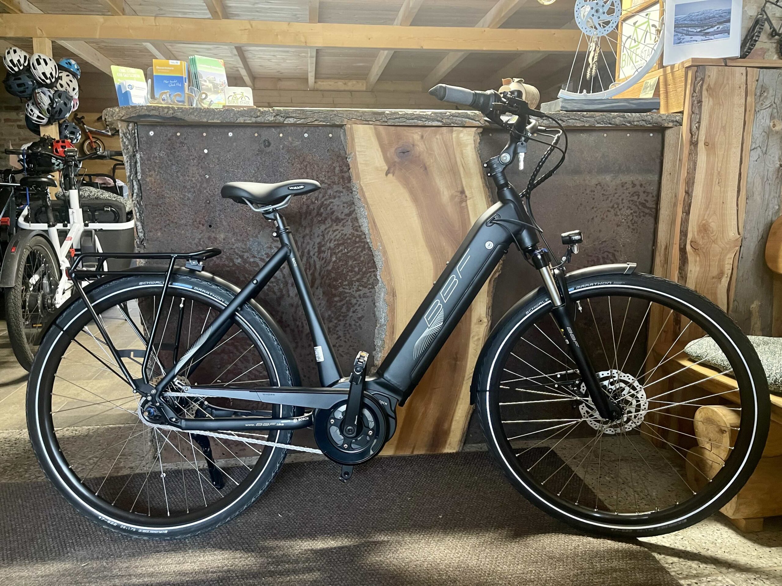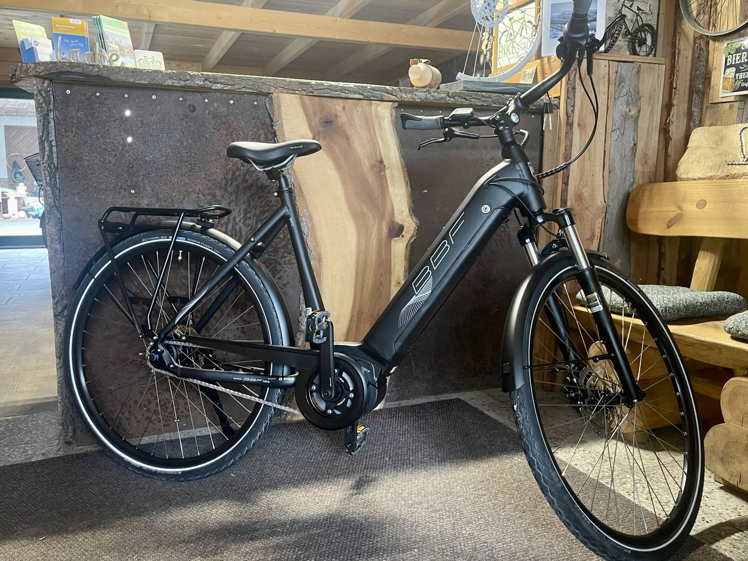 Unser BBF Bato mit Boschantrieb, 400 Wh Akku, 8-Gang Nabenschaltung mit Freilauf und bequemer Sitzposition.