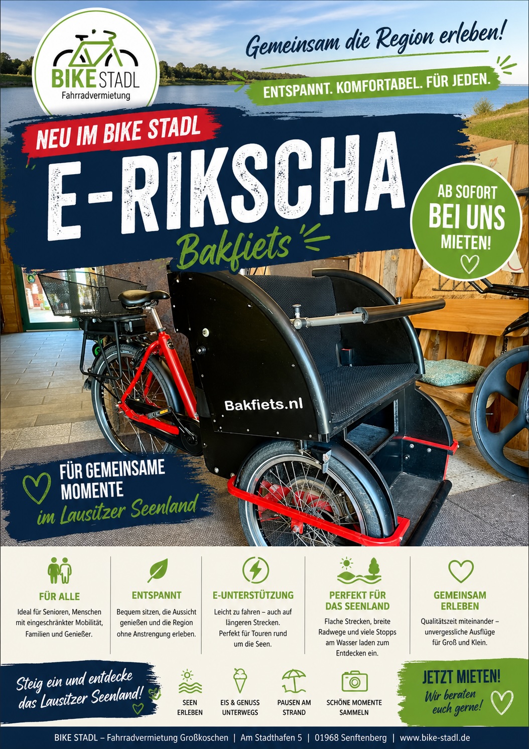 Perfekt für deinen umweltfreundlichen Transport hier im Lausitzer Seenland. Primär und optimal wird es als komfortables Transportmittel für Personen die in ihrer Mobilität eingeschränkt sind, etwa Senioren oder Menschen mit Behinderungen, genutzt.